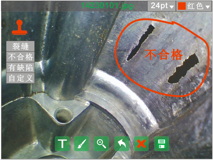 工业内窥镜目前市场普遍软件功能比较单一(图片放大,图片缩小,图片冻结,录像储存等基本的功能)。微视光电WS-Y系列的自主研发智能平台,能支持中英文命名,图片的缺陷快速标识涂鸦标识设置,自定义文字注释等智能功能。